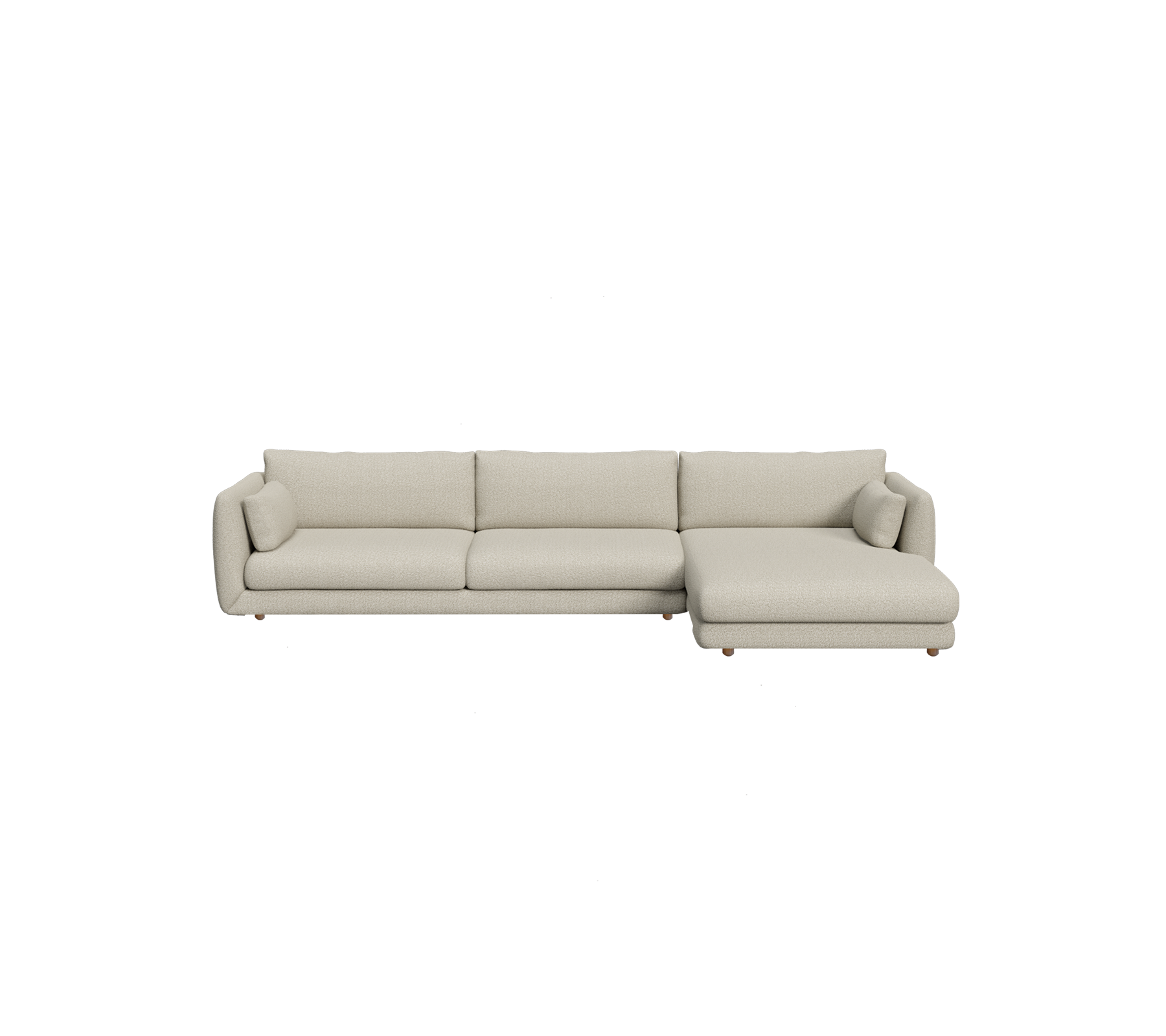 Bloom 3-seater sofa with chaise longue, left and teak legs