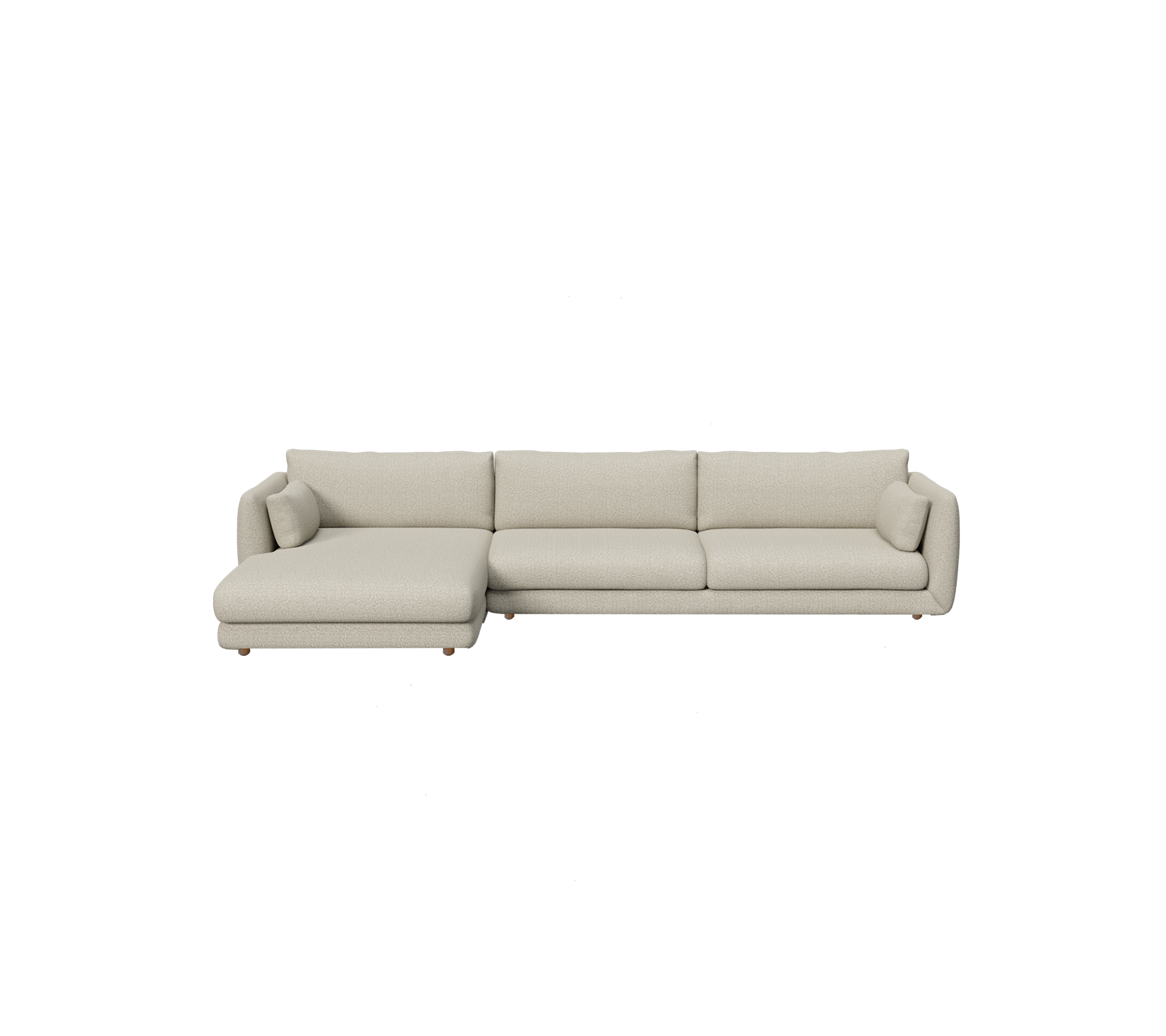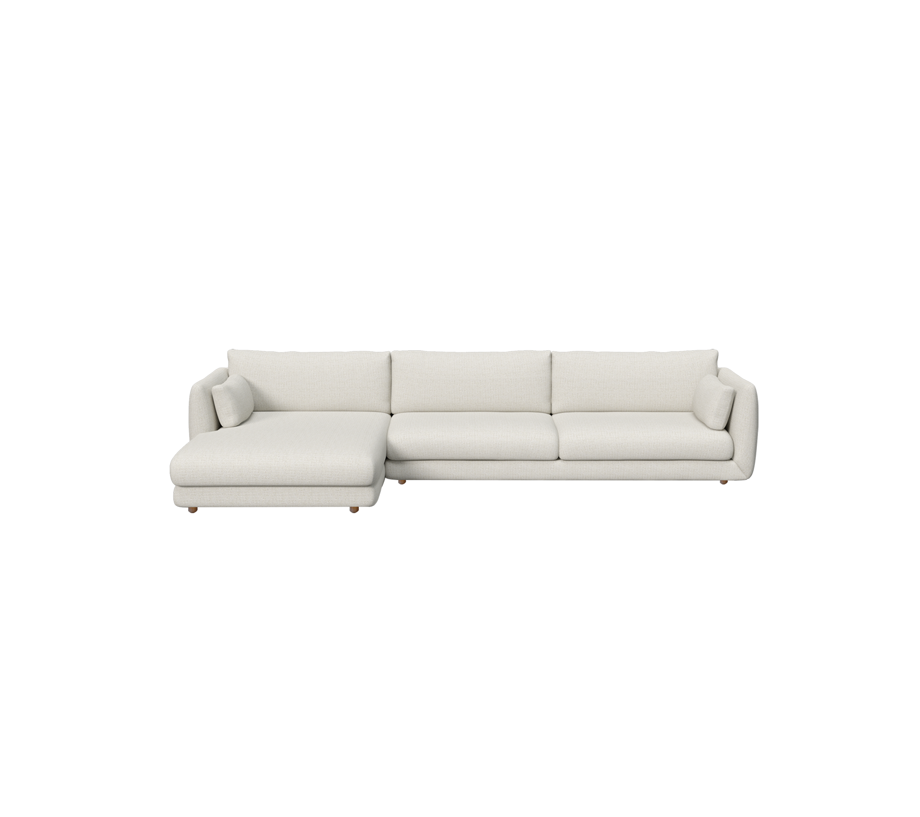 The Bloom 3-seater sofa with right-hand chaise longue by Cane-line Design blends softness and sophistication. With its teak legs, the sofa brings lightness and warmth to any room, while the chaise longue provides extended space to unwind in quiet luxury. The fully upholstered design and deep cushions create a focal point of enduring elegance for refined modern interiors. Prefer a more grounded expression? Choose the Bloom 3-seater chaise longue sofa with plinth, or the left-hand model with teak legs for a different layout.